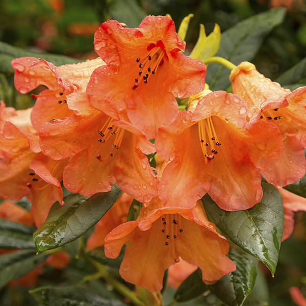 Рододендрон гибридный Тортуазшелл Оранж (Tortoiseshell Orange) - это компактный крупный куст, с рыхлой формой из довольно крупных, колокольчатых, открывающихся в начале лета цветов. Они сочетают в себе мягкие золотисто-желтые и бледно-розовые оттенки, что создает красивый пастельно-оранжевый цвет.