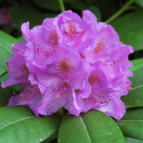 Рододендрон катевбинский Грандифлорум - великолепный, быстрорастущий и морозостойкий. Цветет он в начале июня, предпочитает, как и все остальные представители семейства вересковых, хорошо дренированные кислые почвы, средне- и слабоосвещенные участки, обладает повышенной зимостойкостью.