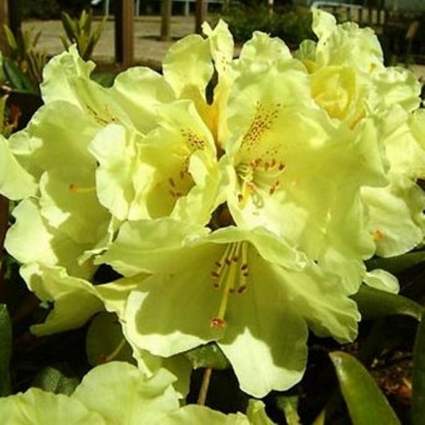 У этого рододендрона красивые золотисто-желтые цветы с привлекательными темными крапинками на верхнем лепестке. Цветет в мае и начале июня, цветки имеют воронкообразную форму, размер 60 х 40 мм, от 14 до 17 штук на округлую кисть. Красивая блестящая листва с красивым оранжево-коричневым пушком на нижней стороне листьев. Высота 75-100см в 10 лет.