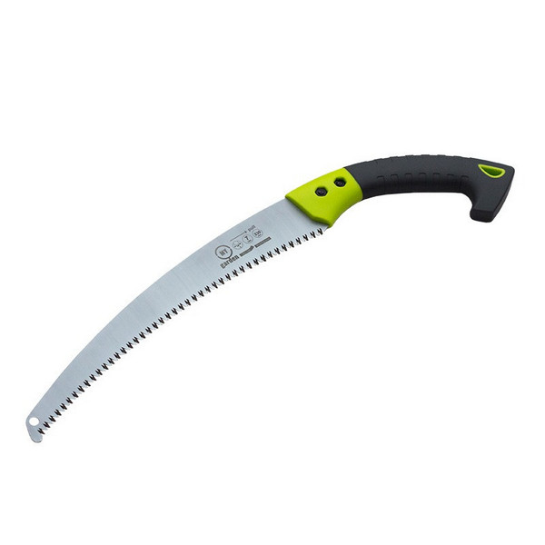 Садовая пила с изогнутым лезвием длиной 330 мм, изготовленна из высококачественной японской стали SK5. Предназначена для обрезки сухих и живых веток до 30мм. Благодаря изогнутому профилю лезвия значительно уменьшается усилие, которое нужно приложить во время работы. Поверхность среза гладкая, края ровные, что способствует надежному заращению новой корой. Двухкомпонентная ручка надежно зафиксирована двумя винтами. Трехгранная заточка зуба обратной направленности облегчает работу с ветками. Закалка зубов увеличивает ресурс инструмента. Ручка имеет отверстие для хранения пилы в гараже или кладовой.