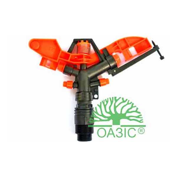 Распылитель изготовлен из высококачественной пластмассы, с 4-я струями воды.С 2-я размерам входа в трубу на 1" и 1/4"Высота распылителя 26 см, ширина 26 смИспользуется распылитель для полива больших площадей, при минимальном давлении воды 4 атмосферы.
