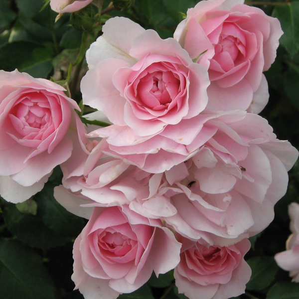 Это один из самых успешных и распространённых современных сортов роз. Цветки (6-7 см) нежно-розовые, перламутровые, с волнистыми лепестками, чашевидные. Цветение очень продолжительное в кистях по 5-15 шт., обильное. Куст густой, округлый, выносит полутень. Устойчивость к заболеваниям очень высокая.
