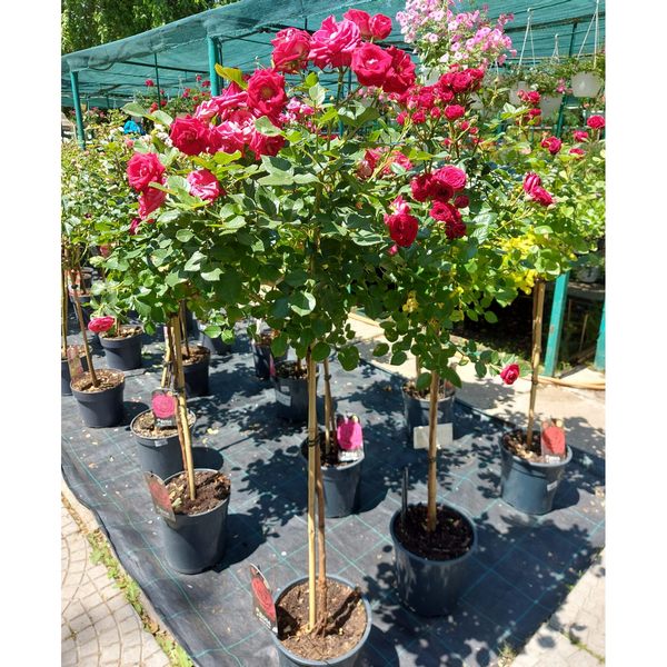 Штамбовая роза всегда и везде бросается в глаза, а живет от 7-ми до 10-ти лет. Она будет цвести дольше, чем обычная роза. Штамбовая роза может быть использована как центральный элемент композиции в вашем саду. По этому, выбирая её, необходимо помнить, что это фокусное растение. Важно сразу подумать, как она будет выглядеть в течение сезона и что будет расти под ней. Так же штамбовая роза может быть использована для создания живых изгородей или арок.