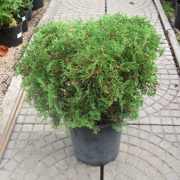 Карликовая форма туи. Крона шаровидная, короткие и густые ветки. Кора красноватая или серовато-коричневая, отслаивающаяся. Хвоя чешуйчатая, темно-зеленая. В возрасте 10 лет достигает 30 см в высоту в диаметре 40 см. Растет медленно. Светолюбива. К почвам нетребовательна, переносит сухость почвы и избыточное увлажнение, но предпочитает свежие, достаточно увлажненные плодородные суглинки. Морозостойка. Применение: одиночные посадки, группы, на каменистых горках.