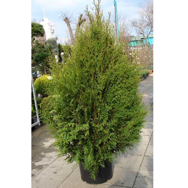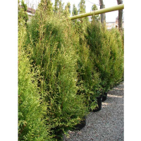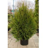 Thuja occidentalis "Aureospicata" - вечнозеленый хвойный кустарник с пирамидальной раскидистой кроной, в возрасте 10 лет достигающий высоты 3 м. Хвоя чешуйчатая, тёмно-зелёная, а у молодых приростков золотисто-желтая. Летом в жаркую погоду кончики хвои становятся золотистыми.Морозостойка. Светолюбива, теневынослива.Нетребовательна к плодородию почвы, дымогазоустойчива. Рекомендуется при создании живых изгородей и шпалер.Высота растения - 150-175 см.