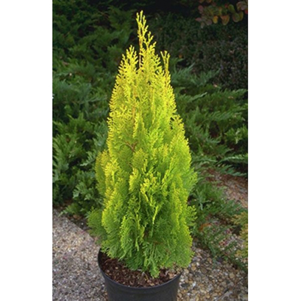 Хвоя: чешуйчатая, частая, интенсивно золотисто-желтая даже зимой, побеги короткие, густые, веероподобно разветвленные