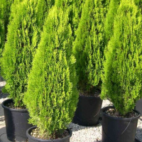 - вечнозеленый узко-колонновидный кустарник. Высота взрослого растения: 2,5-4 м, ширина кроны 0,8-1,5 м. Медленнорастущий, годовой прирост в высоту 10 см, в ширину 5 см.
