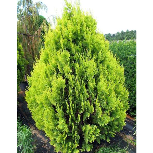 Хвоя: чешуйчатая, частая, интенсивно золотисто-желтая даже зимой, побеги короткие, густые, веероподобно разветвленные