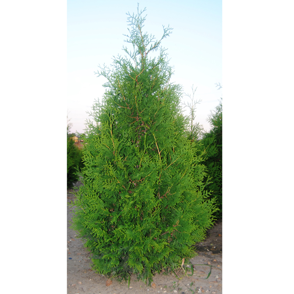 Туя западная Брабант - вечнозеленое хвойное растение, часто многоствольное, с конической, колоновидной кроной, очень популярное для посадки на участках. Может легко стать крупной вертикалью в Вашем саду или послужить очень надежным элементом вечнозеленой изгороди. Растет бысторо, годовой прирост в высоту до 30 см, в ширину - 10 см. Самый неприхотливый сотр западной туи.