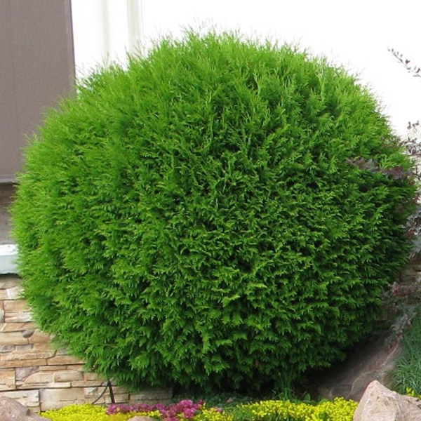 Туя западная Глобоза (Thuja occidentalis Globosa) - карликовая форма туи западной, достигает 1,5 м высотой и около 1,5 м шириной. Форма кроны округлая. Растет быстро. В 10 лет более 1 м в ширину. Побеги прямые и плоские, подняты вверх, густо расположены, перекрывающиеся, равномерно разрастающиеся в стороны.
