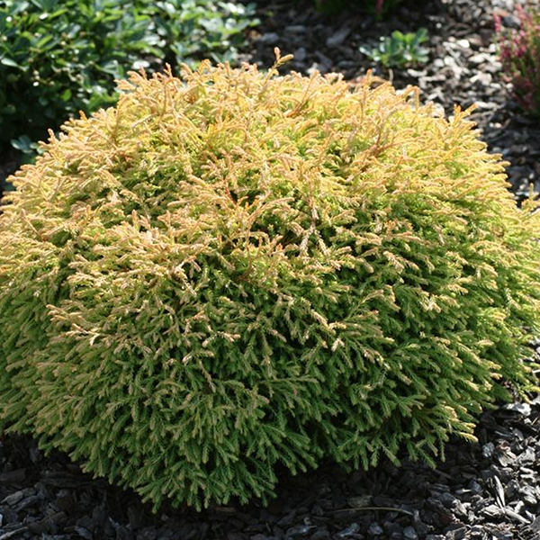 Туя западная Голден Таффет - карликовый, медленнорастущий, вечнозеленый, хвойный кустарник золотистого цвета. Особенностью этого сорта является чешуйчатая хвоя, которая за сезон, трижды меняет свой цвет и морозостойкость.