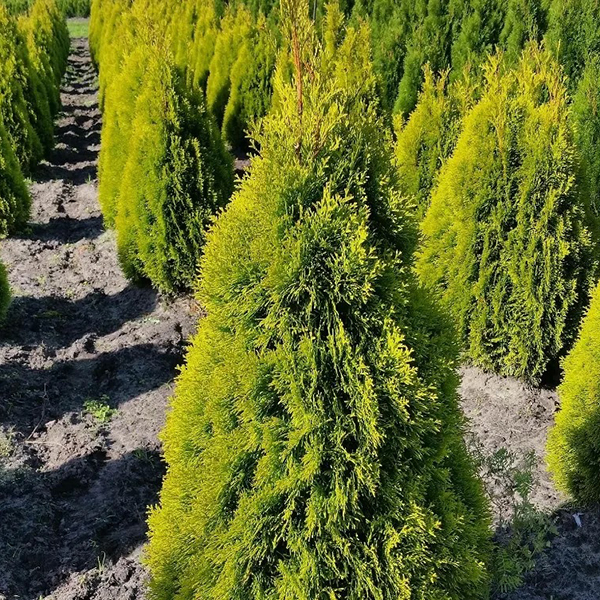Thuja occidentalis Golden Smaragd - вечнозелёное дерево с узкоколоновидной, плотной кроной, имеет яркую, сочную жёлто-зелёную расцветку. Туя западная Golden Smaragd является новым польским сортом, происходящим от самого популярного сорта туи западной - Smaragd. Нетребовательна и морозоустойчива. Высота взрослого растения достигает 4-6 м, при ширине 1-1,5 м. Скорость роста средняя, около 10-20 см в год. В возрасте 10 лет может вырастать до 2 м.