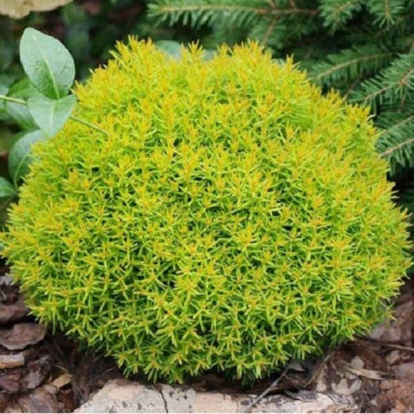 Новая очень декоративная компактная форма с пропорциональной густой шаровидной кроной. Туя Anniek это карликовый сорт с золотистой нежной чешуйчатой хвоей с весны до осени окраска светло зелёная с желтыми кончиками, зимой хвоя приобретает бурый оттенок. Хвойное растение вырастает до 100 см высотой, диаметр кроны до 100 см. Ежегодный прирост до 8 см. Предпочитает солнечные места или полутень, хорошо растёт на умеренно влажных, хорошо дренированных почвах.