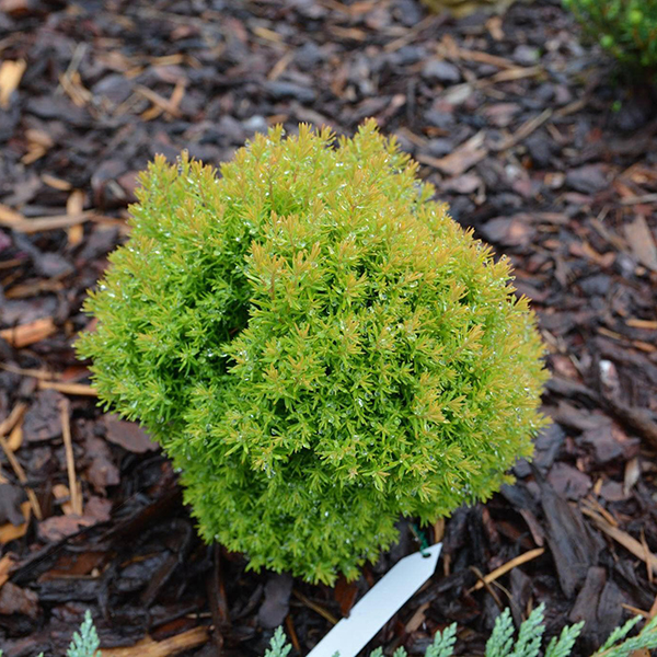 Хвоя: чешуйчатая, насыщенно-лимонного цвета. Молодые приросты ярко-жёлтые, а зимой приобретают бронзовый оттенок.