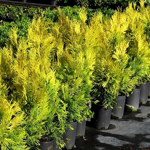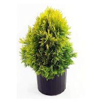 Thuja plicata Forever Goldy - новый сорт туй, с золотисто-желто-зеленой хвоей, один из самых ярких сортов туи, сохраняет окраску даже в зимний период. В высоту достигает 2-х метров, при этом сохраняет правильную конусообразную форму.