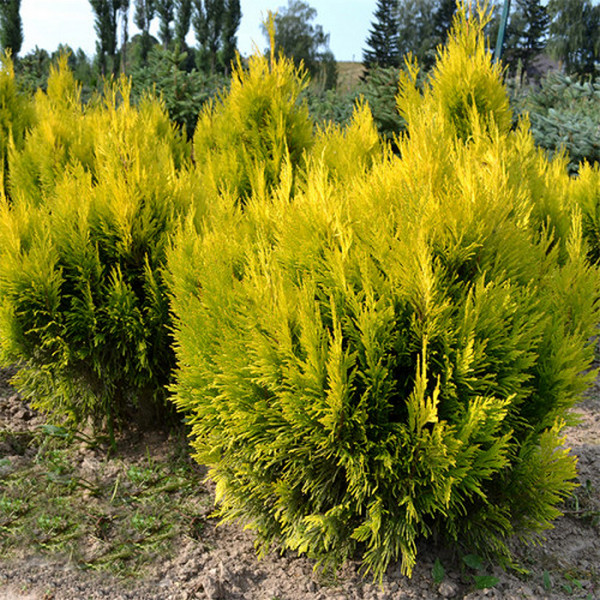 Хвоя: плотная, направленная вверх, золотисто-желтого оттенка, в осенне-зимний период сохраняет цвет.