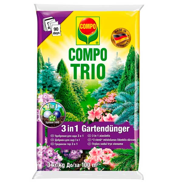 Инновационная формула удобрений Compo "3 в 1" обеспечивает контролируемое и постоянное высвобождение питательных веществ в 2 этапа.Обеспечивает рост и развитие сильных, здоровых растений, с зеленой, плотной листвой. Обеспечивает элементами питания растения до трех месяцев.Вес: 3 кг