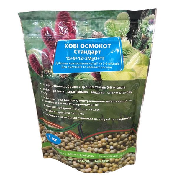 Удобрение Осмокот Стандарт 15-9-12-2MgO+Te – это комплексное минеральное гранулированное удобрение длительного действия (5-6 мест) для лиственных и хвойных растений. Оно содержит комплекс питательных веществ и микроэлементов, регулирующий питание растений и полностью отвечающий их потребностям на протяжении всего периода роста. Главным преимуществом этого удобрения является его продленное время действия – 5-6 месяцев – которого как раз достаточно на период между подкормками растений.