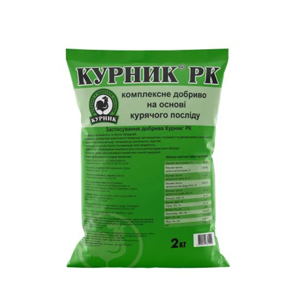 Курник + PK - комплексное органическое удобрение, созданное на базе куриного помета, которое улучшает структуру почвы и обеспечивает растение всеми необходимыми элементами питания в доступной форме (в том числе азотом, фосфором, калием). Используется в качестве весеннего, осеннего удобрения или для подкормки в течение вегетации овощных, плодово-ягодных и декоративных культур.