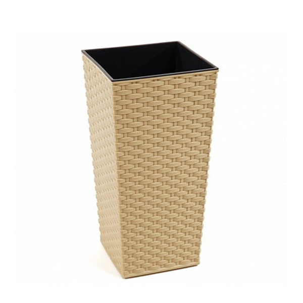 Стильное кашпо с вазоном-вкладкой, выполненное из качественного пластика в современном стиле. Такое кашпо легко моется, при долгой эксплуатации практически не теряет внешнего вида, устойчиво к различным температурным колебаниям. Благодаря удобной конструкции, позволяет наполнять землей только вазон-вкладку, являясь одновременно контейнером для стекающей воды.