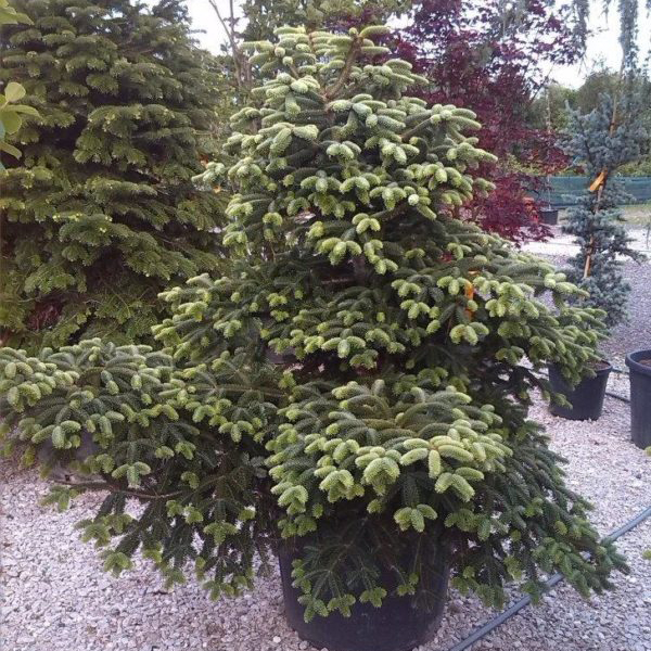Ялиця нумідійська, або алжирська - велике дерево з сімейства соснових з конусоподібною кроною, темно-зеленою хвоєю і великими шишками, родом з Північної Африки, де на висоті 1500 - 2000 м вона росте разом з тисом ягідним, атласським та деякими видами клена та дуба. Місцерозташування і грунт: До грунтів невибагливий, але надає перевагу багатим глинистим землям. Виносить помірне затемнення. Досить вологолюбна та морозостійка. Не любить ущільнення ґрунту, а також погано переносить забруднення повітря пилом та кіптявою. Використання: Ялиця нумідійська дуже ефектно виглядає в групових посадках, а так само в алеях, маючи густе розгалуження, вона добре переносить стрижку (у молодому віці) і може бути використана для створення високих формованих живоплотів. Висота рослини: 100/+ см