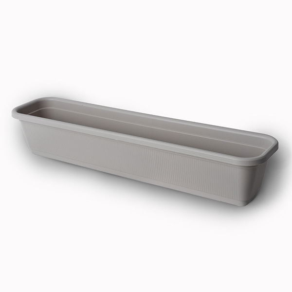 Скринька прямокутної форми, зовні має матову поверхню. Дизайн вазону стриманий, лаконічний та сучасний. Форма вазону забезпечує високу стійкість конструкції, що важливо, коли вазони використовуються для вуличних кольорів.