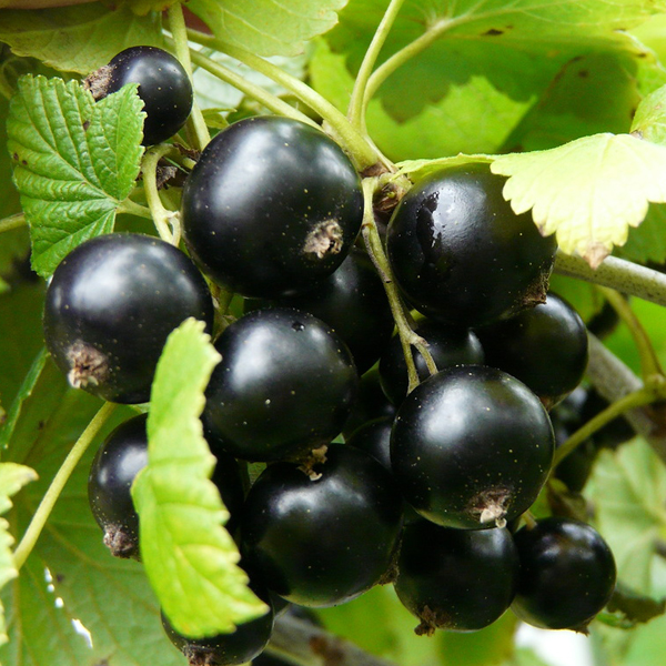 Смородина чорна Казкова - чудовий сорт чорної смородини української селекції, середнього терміну дозрівання, який щорічно радує стабільним високим урожаєм та чудовою якістю ягід. Дозрівання дружне, ягоди не обсипаються. Час дозрівання – друга половина липня. Врожайність 4-6 кг із куща. Ягоди великі, масою 3-4 г, блискучі, округлої форми. Смак приємний, десертний, кисло-солодкий. Ягоди смородини - справжня природна комора вітамінів та корисних мікроелементів. Кущ напіврозлогий, сильнорослий, висота 1,2 метра. Втечі потужні. Стійкий до хвороб, посухостійкий, морозостійкий.