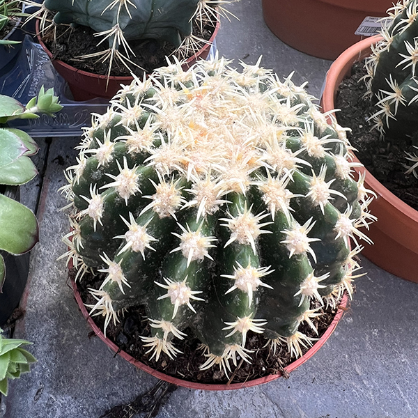 Колючки: Відмінність від стандартного Echinocactus grusonii – дуже короткі жовтуваті колючки.