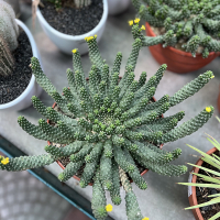Період цвітіння: Протягом усього життя може жодного разу не зацвісти. Як і всі сукуленти, цей вид дуже рідко тішить появою квітконосів. Основну декоративність становить велике стебло з листям, що нагадує канделябр зі свічками.