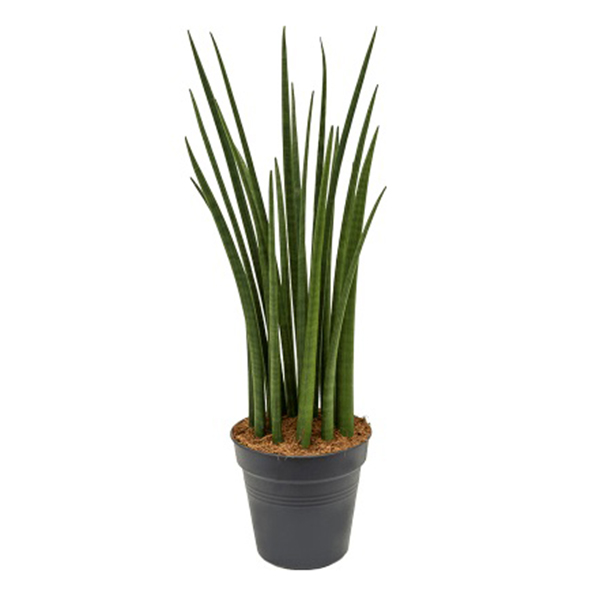 Сансевієрія циліндрична - незвичайна, цікава багаторічна рослина, з циліндричними, темно-зеленими, шкірястими листками, із сріблястими поперечними смугами та жовтуватою облямівкою, які утворюють прикореневу розетку. Уздовж усього листа йде глибокий жолобок, до верху листя звужуються і закінчуються гострим гострим кінчиком. Квітконіс досягає 50 см, квітки, зібрані в колосоподібну волотку, кремово-білі, у верхній частині відтінені червоним. Може зацвісти будь-якої пори року. Сансевієрія - одна з найвибагливіших кімнатних рослин. Потребує добре дренованого грунту, що містить керамзит або пісок, також може підійти спеціальний грунт для сукулентів.
