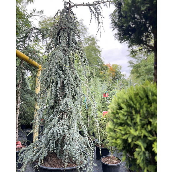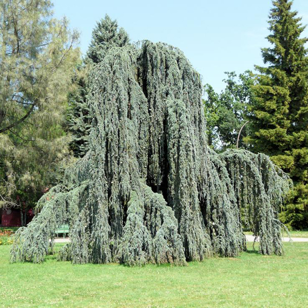 Кедр атлантичний Глаука (Glauca) - вічнозелене дерево досить великих розмірів. Завдяки своїм декоративним якостям широко використовується професіоналами в ландшафтному оформленні будь-якої специфіки, а своєю невибагливістю завоював увагу навіть садівників-початківців. Форма: У молодого дерева гілки асиметричні, трохи піднесені. З віком крона опускається, набуває конусоподібної форми у вигляді парасольки. Розмір: У дикій природі досягає розмірів до 50 метрів. Середня висота штучно вирощеного дорослого дерева – до 40 метрів. Приріст на рік становить до 50 см заввишки і 25 см завширшки. Хвоя: Голкоподібна, сіро-блакитного кольору, довжиною до 2,5 см. Як правило, короткі пагони вкриті хвойними пучками, а довші - хаотично, спіралеподібно. Коренева система: Стержневого типу. Коріння слабке, бічні відростки поверхневі, саме тому, у перші роки життя, саджанець має бути підв'язаний. Рекомендації з посадки: Молоді дерева краще садити з відстанню 5-6 метрів, якщо місцевість відкрита - краще прорідити. У посадкову яму слід помістити деревну золу або перегній. У разі глинистого ґрунту обов'язково на дно ямки помістити пісок. Догляд: Молоді кедри не можна залишати не накритими в перший рік посадки, особливо в період з березня до квітня, найкраще для цього використовувати марлю. Доросле дерево особливого догляду не потребує. Від білого нальоту або павутиння на пагонах слід позбавлятися за допомогою звичайного господарського мила або слабкого розчину цибулі. Для профілактики паразитів чудово підходять Децис, Актеллік. Особливості: Стійкий до перепадів температур, влітку добре переносить спеку, зимовий снігопад для Глауки лише на користь. Боїться сильного вітру. Постраждала за зиму хвоя навесні відновлюється. Використання в дизайні: Відмінно підходить для ландшафтного будівництва, але також популярний для приватного озеленення групами або поодиноко.