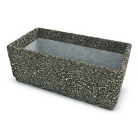 Вуличний бетонний прямокутний вазон із фактурою з гальки. Можна застосовувати як для висадки квітів, так і як елемент прикраси. Вазон із фактурою з натурального каменю - це стильний і водночас міцний елемент декору. Перевага таких архітектурних форм у довговічності. Естетичний вигляд виробів не руйнується під впливом ультрафіолету та зимових циклів (замерзання-відтавання), не вимагають оновлення, фарбування. Бетонні вазони – конструкції, що дозволяють створити акуратну та привабливу клумбу в будь-якому зручному місці, будь то приватний двір, прибудинкова територія чи вулиця міста.