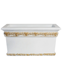 Вазон прямокутної форми з візерунком у стилі доричних колон. За рахунок своєї прямокутної форми він ідеально підходить для оформлення бордюрів та доріжок як обмежувачі та напрямні. Декілька таких вазонів уздовж фасаду будинку вдало доповнять його, додадуть свіжості і стануть яскравою прикрасою. Довжина: 770 мм Ширина: 390 мм Висота: 400 мм Матеріал: бетон Вага: 70 кг Можлива обробка поверхні виробу з нанесенням якісних світлостійких фарб. Додатково декоративні елементи виробів можуть відтінятись срібним, золотим або бронзовим пігментом. Кольорові рішення: - CONCRETE (бетонний сірий) - TRAVERTINE (травертин) - SANTORINI (перлинний) - IVORY (слонова кістка) - UMBRA (умбра) - WINE (червоне вино) - EMERALD (смарагд) - ANTHRACITE (антрацит) - GRAPHITE (графіт) - TERRACOTTA (теракот) - COPPER (мідь) - AMBER (бурштин) - AQUAMARINE (аквамарин)
