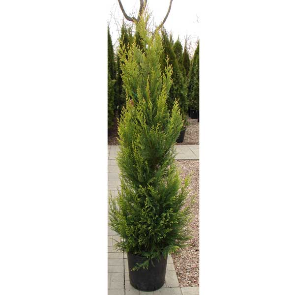 Chamaecyparis Leylandii 'Excalibur Gold' вічнозелена рослина з характерним прямостоячим колоноподібним стволом, віялоподібно розташованими гілочками. Світло: сонце, півтінь. Використовується в живоплотах та одиночних посадках. Висота рослини 150-175 см