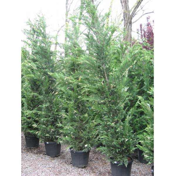 Cupressocyparis leylandii Variegata – вічнозелене хвойне дерево з вузько-конусоподібною або колоноподібною формою крони. Природний міжродовий гібрид кипарисовика та кипарису. Швидкість зростання до 40 см на рік. На сьогоднішній день вважається одним із найшвидше хвойних. Має декоративну цінність за рахунок кольору хвої, від бронзово-жовтої весни до жовто-зеленої літа. Широко використовується у садово-парковому озелененні. Надає клієнту можливість дуже швидко, за мінімальних витрат, отримати яскраву живоплоту. Хвоя луската, зелена з жовтим пір'ям. Віддає перевагу світлу, виносить півтінь. Невимогливий до ґрунтів. Має середню морозостійкість, переносить літню посуху. Стійкий до хвороб. Висота рослини – 300-350 см.