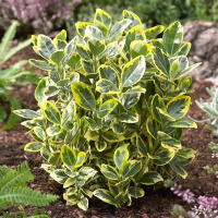 Бересклет японський Marieke – декоративний вічнозелений чагарник, з яскраво-золотисто-зеленим листям, iз золотисто-жовтою окантовкою. Один із найпопулярніших сортів японського бересклету, який високо цінується за декоративність протягом усього року. Доросла рослина досягає близько 1,5 м заввишки та до 2 м завширшки. У зимку рослина зберігає декоративність, залишаючись ефектним акцентом на фоні снігу.