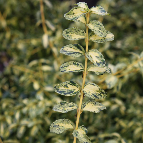 Бересклет Форчуна Арлекін (Euonymus fortunei Harlequin) - вічнозелений чагарник, що стелиться спочатку з піднятими, пізніше з густими низьколежачими пагонами з незвичайним, плямистим, білим і зеленим листям. На відкритих просторах досягає висоти 20-50 см. Гілки при зіткненні із землею швидко вкорінюються, утворюючи вічнозелені килими, за сприятливих умов швидко розростаються і можуть підніматися на стовбури дерев, шорсткі стіни або з природного каменю, дерев'яні сходи і швидко досягти висоти м. Рослина з дуже декоративними властивостями. Листя: строкаті, овальної форми, зубчасті по краях, супротивно розташовані, еліптичні, або округло-яйцевидні, довжиною 4 см і шириною 2,8 см, темно-зелені з яскравими вкрапленнями. Нове зростання листя чисто біле, потім з рожевим відтінком взимку. Квіти: дрібні, непомітні, зелено-жовті суцвіття. Цвіте у червні-липні. Місцерозташування та грунт: Зростає як на сонці, так і в глухій тіні, не змінюючи декоративних якостей. Виносить всі культивовані садові ґрунти, від помірно сухих до вологих, віддає перевагу гумусним, рівномірно зволоженим, родючим ґрунтам від слабокислих до лужних. Використання: Його можна садити в квіткарні та контейнери, для задернення поверхні ґрунту між деревами, в рокарії та альпійські гірки, для створення вічнозелених, низьких бордюрів, у колористичні композиції та міксбордери. Алейна форма рекомендується для міського озеленення та як солітер на присадибних територіях. Також можливе створення декоративного живого бордюру, що рослина добре реагує на стрижку.