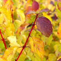 листя: еліптично-яйцеподібні, краї цілокраї, темно-зелені, восени стають яскраво-червоними,