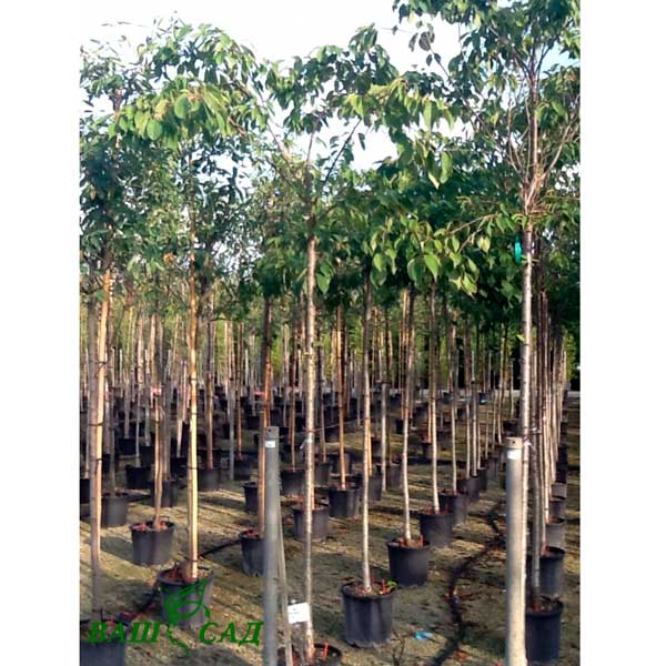 Prunus serrulata "Shiro-fugen" - листопадне маленьке дерево, що швидко росте, прищеплене на штамб, з кроною спочатку лійкоподібною, з віком - мальовничо розлогою, ажурною, зонтичною. Листя розташоване чергово, еліптичні, 8-12 см завдовжки, при розпусканні мідні, осіннє забарвлення жовто-оранжево-червоне. "Широ-фуген" - це сорт, який приваблює своїми білими напівмахровими квітками, що стають поступово біло-рожевими. Висота штамба – 220 см. Окружність стовбура – 10-12 см.