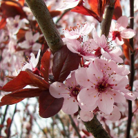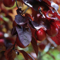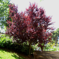 Слива розчепірена Нігра - листопадний, деревоподібний чагарник або невелике дерево з овальною кроною і гілками, що мальовничо звисають. Це одна з ранньоквітучих рослин. Досягає у висоту 5-7 м, в діаметрі - 3-5 м. Листя еліптичної форми з інтенсивним забарвленням і восковим блиском, насичено темно-червоні, не вигоряють ціле літо і не вицвітають восени. Цвіте яскраво-рожевими квітами, що поступово червоніють. Плоди: темно-червоні, круглі, 2-3 см. в діаметрі, що рясно всипають дерево, їстівні, солодкі та соковиті, можуть бути використані для консервування, дозрівають у серпні-вересні. Місцерозташування та ґрунт: любить сонячні місця. Віддає перевагу свіжим, помірно вологим, піщано-глинистим грунтам, від слабо кислих до злегка лужних. Використання: Слива розчепірена Нігра - чудовий невеликий чагарник, за ним легко доглядати і підходить для будь-якого саду. Рекомендується для озеленення парків та садів в одиночних та групових посадках, як солітер. Слива розчепірена Нігра відрізняється своєю декоративністю квітів, листя, має їстівні плоди.