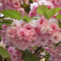 Сакура Канзан (Kanzan, декоративна слива, японська вишня) – це неймовірно красиве декоративне дерево. Цей сорт японської вишні є невисоким (виростає до 12 метрів), має сильну крону з великою кількістю суцвіть у період цвітіння. Цвітіння сакури продовжується 2 тижні, після зав'язуються плоди. Вишеньки (лили сливи) є темно-сині, майже чорні, або фіолетові горошини, гірко-кислі на смак. Особливості сорту: Сакура Канзан – чарівне дерево невисокого зросту. Відмінно почувається в місті, може рости на суглинках або ґрунтових сумішах. Має приємний гладкий ствол світло-коричневого кольору. З віком кора стає темнішою і покривається елегантними тріщинами. Характеристики плода: Темні, практично чорні ягоди, непридатні для вживання. Період дозрівання: Середина весни. Урожайність: Низька, плоди не використовуються в харчових цілях. Форма крони: Перевернутий конус. Молоді гілки звисають над землею, основні паралельні стовбуру, спрямовані у небо. Рекомендації з посадки та догляду: Сакура Канзан - це дуже теплолюбна рослина, її варто купити, якщо ділянка південного або південно-східного розташування. Дерево погано переносить різкі перепади температури та протяги, тому місце має бути добре освітленим, на височині. Лунка повинна трохи перевищувати розміри кореневої системи, для засипання коренів використовується суміш із верхового торфу, перегною та піску. У ямі обов'язково облаштовується дренаж. Догляд за сакурою Канзан дуже своєрідний. З настанням перших холодів стовбур потрібно огортати мішковиною, а ґрунт навколо дерева мульчити. Удобрюється декоративна злива двічі на рік: перед рухом соку і після цвітіння.