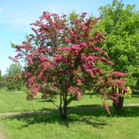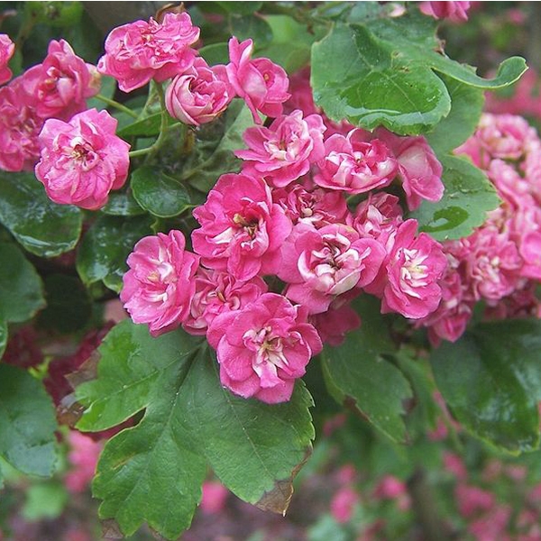 Глог середній Пауль Скарлет (Crataegus media Paul's Scarlet) - сорт листяних, декоративних дерев, що входить до сімейства Рожевих. Шляхом щеплення вчені зі звичайного глоду отримали справжній витвір мистецтва. Завдяки людським старанням колись непримітний чагарник, прикрашає тепер сади та парки своїм ніжним рожевим кольором. Форма: У молодих представників крона витягнута, має конусоподібну форму. З віком гілки розростаються, за рахунок чого деревце набуває більш округлих обрисів. Розмір: Невисокі. За добрих умов утримання можуть досягати 5 метрів висоти та 4-х завширшки. Однак габарити можуть бути меншими, саме тому цей вид часто відносять до кущів. Приріст складає до 50 см на рік. Листя: З'являється рано, на самому початку весни. Має видовжену форму, листочки великі, різьблені. На гілках розташовуються послідовно, кілька штук до ряду. Також гілки покриті ворсинками та колючками до 2 см завдовжки. Корнева система: Розвинена середньо. Окремі коріння слабкі, тонкі, проте йдуть глибоко в ґрунт, що компенсує їх недоліки. Формуються кореневі зв'язки, з'єднані між собою. Рекомендації щодо посадки: Для швидкого вкорінення слід приділити увагу ґрунтовій суміші. У рівних пропорціях потрібно змішати пісок, торф та перегній. Посадкова яма має бути великих розмірів. У неї міститься дренажний шар до 10 см. Молоду рослину треба замульчувати, краще торфом. Догляд: При посусі вимагає додаткового поливу, з розрахунку 15 - 20 літрів на одне дерево. Підживлення та добрива не потрібні. Для профілактики та лікування паразитів та інфекцій використовуються інсектицидні суміші для розпилення. На зиму можна не вкривати, оскільки цей сорт досить морозостійкий. Особливості: Крім високих декоративних якостей, дерево здатне також плодоносити. Невеликі, до 1,5 см у діаметрі, плоди їстівні, проте вони дуже рідко і не систематично. Використання в дизайні: Як окремий екземпляр. Чудово виглядає на тлі кам'яних елементів, біля невеликих водойм.