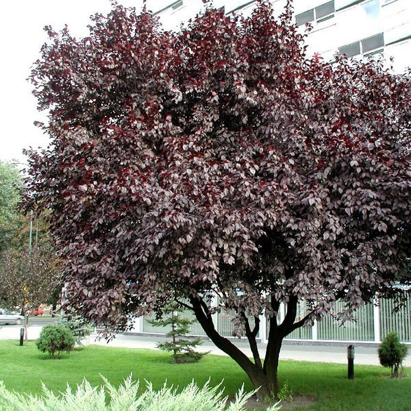 Слива розчепірена Пісарді - чудове дерево для ландшафтного дизайну. Має оригінальну форму крони, завдяки якій і здобула свою незвичайну назву. Листя має незвичайний пурпуровий колір, який підкреслюється кокетливими білими квітами. Це дуже цінне дерево на ділянці, яке порадує розкішним зовнішнім виглядом.