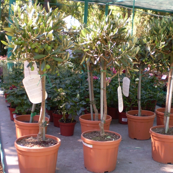 Олива європейська (оливкове дерево) – вічнозелене субтропічне дерево сімейства маслинові. Вважається одним із довгожителів рослинного світу. Середня тривалість життя маслини – 300 років. Повільно зростаюче. Оливкові дерева добре ростуть на ґрунтах з достатнім вмістом вапна, на кам'яно-піщаному ґрунті, їх коріння настільки сильне, що дерева можуть рости навіть у скелі. Коренева система дуже розгалужена, вона в кілька разів перевищує проекцію крони дерева, хоча знаходиться на середній глибині до 80 см. Це дозволяє оливі витримувати посухи. Коренева система та стовбур утворюють потовщення – шию, яка дуже часто збільшується, розростається. З неї щорічно виростають молоді пагони, які потрібно постійно видаляти, щоб дерево не перетворилося на величезний кущ. Стовбур у оливи зазвичай не вище одного метра. У молодих дерев кора попелясто-сіра, у старих – темна, шорстка. Листя у маслини супротивні, ланцетні, зверху зелені, знизу сріблясто-сірі. Квітки дрібні – 0,4 – 0,5 см, жовтувато-білі, зібрані по 15-30 штук у пазушних кистях, дуже запашні. Цвіте у травні – червні. Плід оливки - кістянка зеленого кольору, після повного дозрівання змінює колір на темний і часто чорний. Максимальне, любить світло та сонце. Будучи не надто вимогливою до ґрунту маслини чудово освоїться на ґрунті для кадкових рослин. Переважна грунтова суміш: дернова земля, перегній, пісок (2:1:1) з додаванням вапна. У готовий субстрат корисно додати подрібнену цеглу та шматочки деревного вугілля. Хороший дренаж також потрібний. Полив: Влітку регулярний, але не рясний. Взимку рослину поливають рідко, стежать, щоб не пересихала ґрунтова грудка.