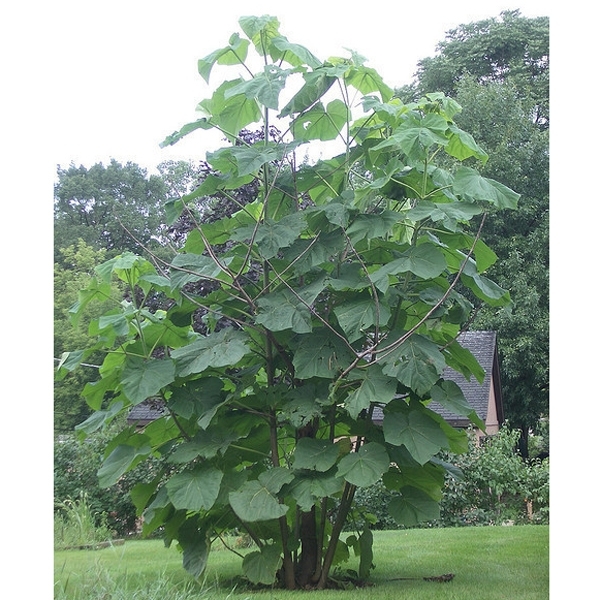 Павловнія або Адамове дерево – багаторічна високоросла (до 15 – 20 м у висоту) та швидкоросла листопадна рослина з дуже великим листям (від 20 см до 50 см) та красивими запашними суцвіттями (до 30 – 50 см завдовжки) ) з ніжно-фіолетових (іноді білих) кольорів. Темпи зростання дерева випереджають усі дерев'яні рослини, що існують у світі, і вже в 8 - 9-річному віці його деревина досягає повної зрілості. Деревина павловнії використовується при виготовленні пресованих матеріалів, стелажів, фанери, меблів та навіть музичних інструментів. Листя павловії також унікальні за своїм хімічним складом. Вони містять до 20% протеїнів (білків), за смаковими характеристиками нагадують зелень люцерни, конюшини, тому є цінним кормом у тваринництві. Можуть використовуватись і для салатів. До того ж вони здатні поглинати вдесятеро більше вуглекислого газу, ніж листя звичайних дерев. Листя: Темно-зеленого кольору, великих розмірів діаметром близько 50-70 см, бархатисті, на довгих черешках. Квітки: Великі шириною до 6см, запашні, що видають ванільний, злегка мигдальний аромат, фіолетово-блакитного кольору, усередині з жовтою смужкою, чашка дзвонової форми. Квіти зібрані в суцвіття-метелик довжиною до 30 см. Ще до розпускання листя в квітні-травні. Плоди: Зелені коробочки широкояйцевидної форми, довжиною 30-45 мм, містять безліч крилатого насіння, при дозріванні у вересні-жовтні місяці стають коричневими і залишаються висіти на дереві всю зиму. Плодоношення починається з 5-6 років. Місцерозташування та ґрунт: Рекомендуємо висаджувати на теплих, сонячних ділянках, захищених від зимових вітрів. Часткова тінь допустима, але відкрита сонячна ділянка краща. Невибаглива рослина, чудово росте на родючих глинистих, добре дренованих ґрунтах. На бідних ґрунтах уповільнюється зростання.