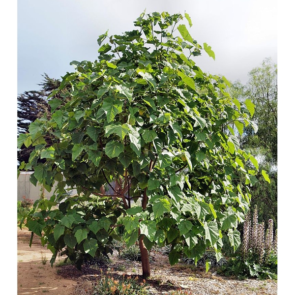 Павловнія або Адамове дерево – багаторічна високоросла (до 15 – 20 м у висоту) та швидкоросла листопадна рослина з дуже великим листям (від 20 см до 50 см) та красивими запашними суцвіттями (до 30 – 50 см завдовжки) ) з ніжно-фіолетових (іноді білих) кольорів. Темпи зростання дерева випереджають усі дерев'яні рослини, що існують у світі, і вже в 8 - 9-річному віці його деревина досягає повної зрілості. Деревина павловнії використовується при виготовленні пресованих матеріалів, стелажів, фанери, меблів та навіть музичних інструментів. Листя павловії також унікальні за своїм хімічним складом. Вони містять до 20% протеїнів (білків), за смаковими характеристиками нагадують зелень люцерни, конюшини, тому є цінним кормом у тваринництві. Можуть використовуватись і для салатів. До того ж вони здатні поглинати вдесятеро більше вуглекислого газу, ніж листя звичайних дерев. Листя: Темно-зеленого кольору, великих розмірів діаметром близько 50-70 см, бархатисті, на довгих черешках.