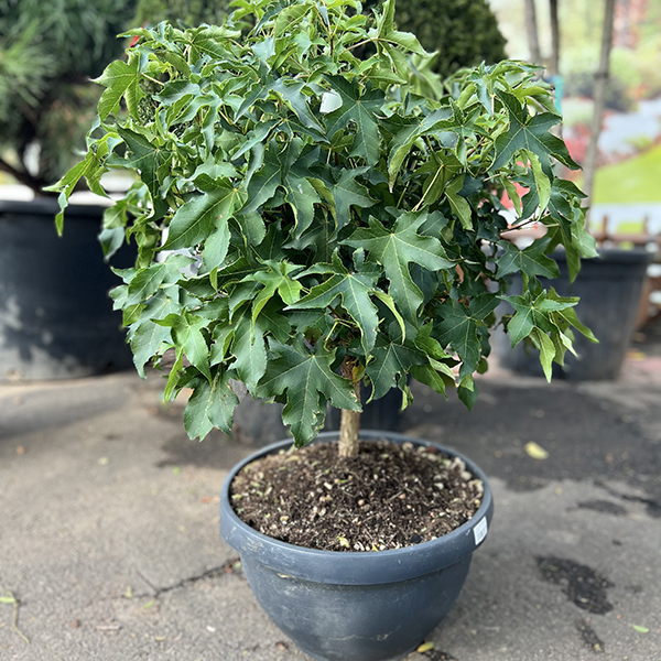 Liquidambar styraciflua Gum Ball - компактне, декоративне дерево з ідеально кулястою кроною, яка формується природним шляхом. Восени зачаровує яскравими відтінками червоного, помаранчевого та пурпурового. Повільний ріст і невибагливість роблять ідеальним для садів, алей та міських просторів. Декоративна кора та незвичайні плоди дають унікальність.