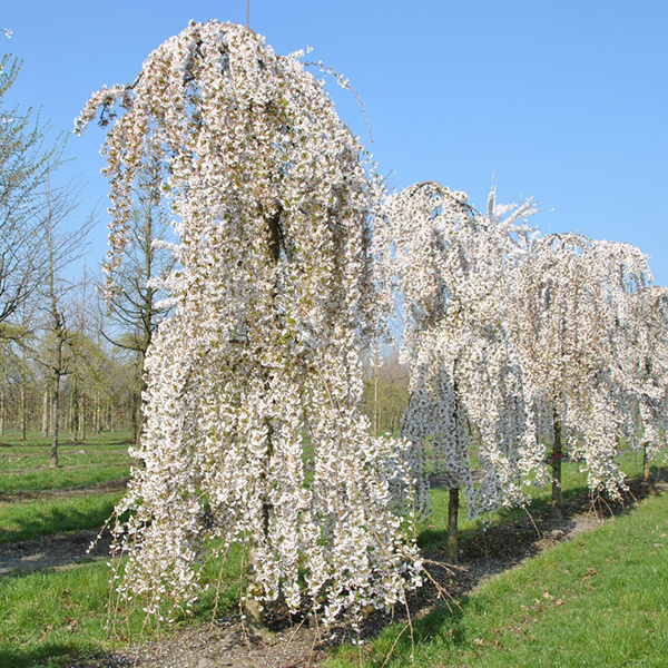 Квіти дуже рясні, схожі на "фонтан", з білосніжними квітами, що звисають пучками.