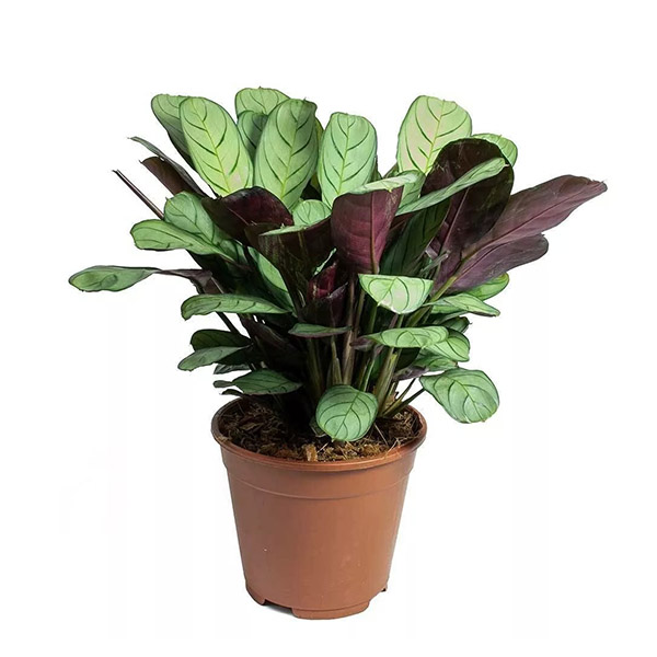 Темно-зелене, цілісне, досить довге листя має на поверхні безліч смужок, що розходяться несиметрично від центральної жилки до країв. Смужки можуть бути пофарбовані в жовтий, блідо-зелений або сріблястий колір. Листочки рослини досить рухливі. Наслідуючи промені сонця, вони можуть опускатися і підніматися.