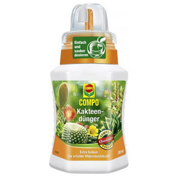 РІДКЕ ПРИДБОРЕННЯ ДЛЯ КАКТУСІВ COMPO - спеціальне мінеральне добрива від COMPO забезпечує оптимальний розвиток рослин, а також сильне і компактне зростання. З унікальним трирівневим дозатором. Для внутрішнього використання, садів, балконів/ванн та теплиць. Підходить кактусів, сукулентів та бонсай.